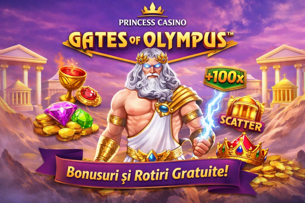 Gates of Olympus este unul dintre cele mai cunoscute sloturi moderne din portofoliul Pragmatic Play, iar la Princess Casino ocupă o poziție de top în preferințele jucătorilor care caută volatilitate ridicată și câștiguri potențial mari. Jocul se diferențiază clar de sloturile clasice prin mecanica „pay anywhere”, multiplicatori progresivi și o temă mitologică puternică, centrată pe zeul Zeus.